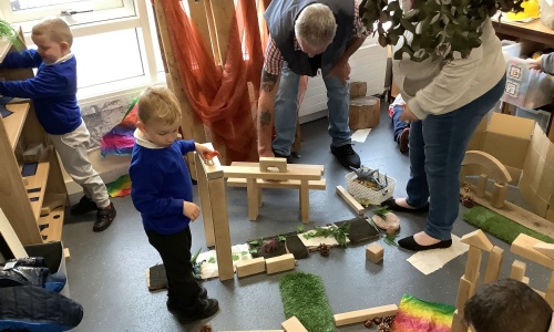 Every half-term, EYFS holds opportunities for parents to develop and play alongside their children throughout Pre-school, nursery and Reception. At the start of each session, we work alongside parents to develop a new skill, such as bedtime reading, counting with everyday items in the home, play talk, then parents get the chance to be alongside their children in the setting trying out the new skills.
