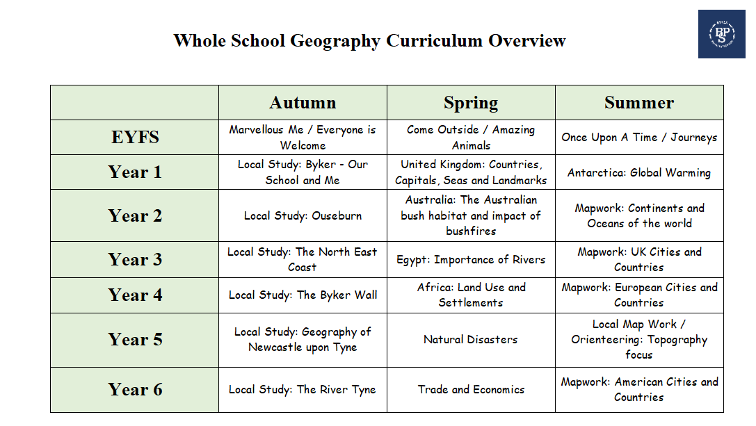 At Byker Primary School, we follow the National Curriculum for Geography.